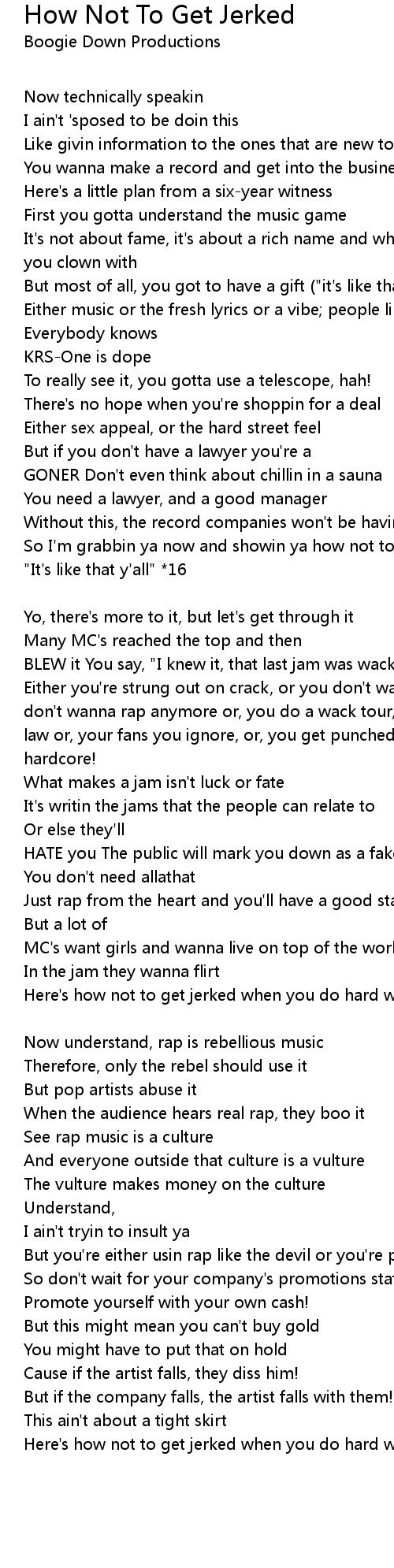 Either you're strung out on crack, or you don't wanna be black anymore, or, you don't wanna rap anymore or, you do a wack tour, or, you get in trouble with the law or, your fans you ignore, or, you get punched in the jaw cause, you're not hardcore! |