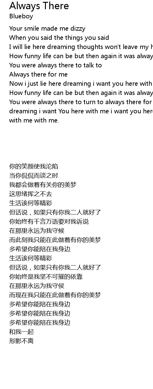 You were always there to turn to always there for me now i just lie here dreaming i want You here with me i want you here with me i want you here with me with me with me. |