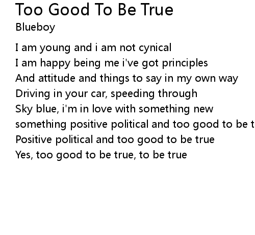 | 歌曲 | Too Good To Be True |
