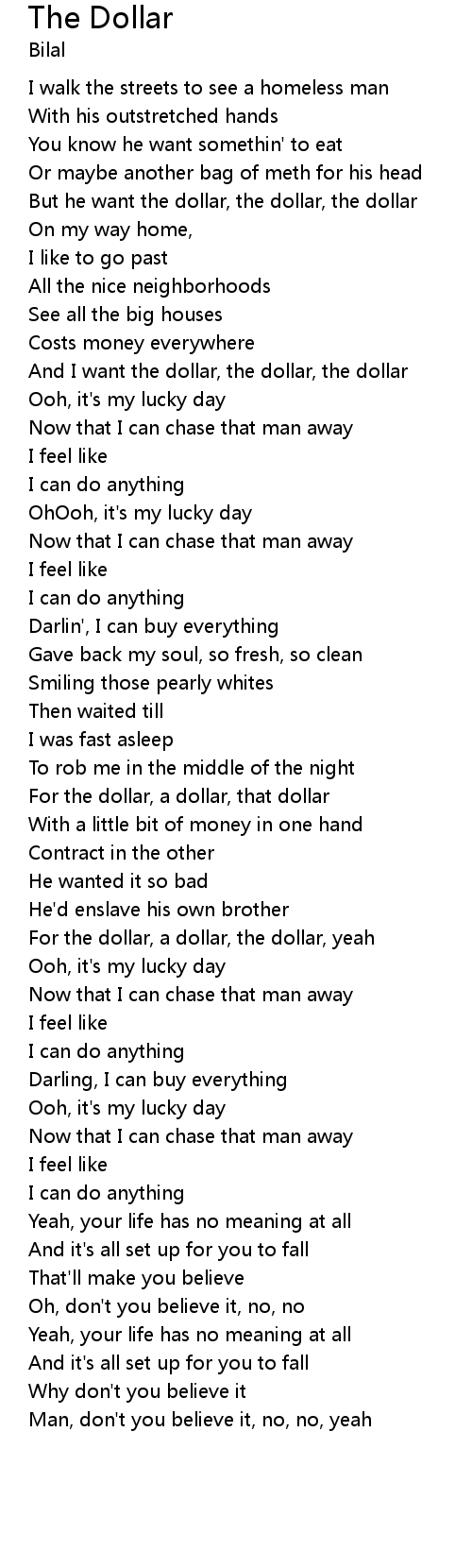 But he want the dollar, the dollar, the dollar |