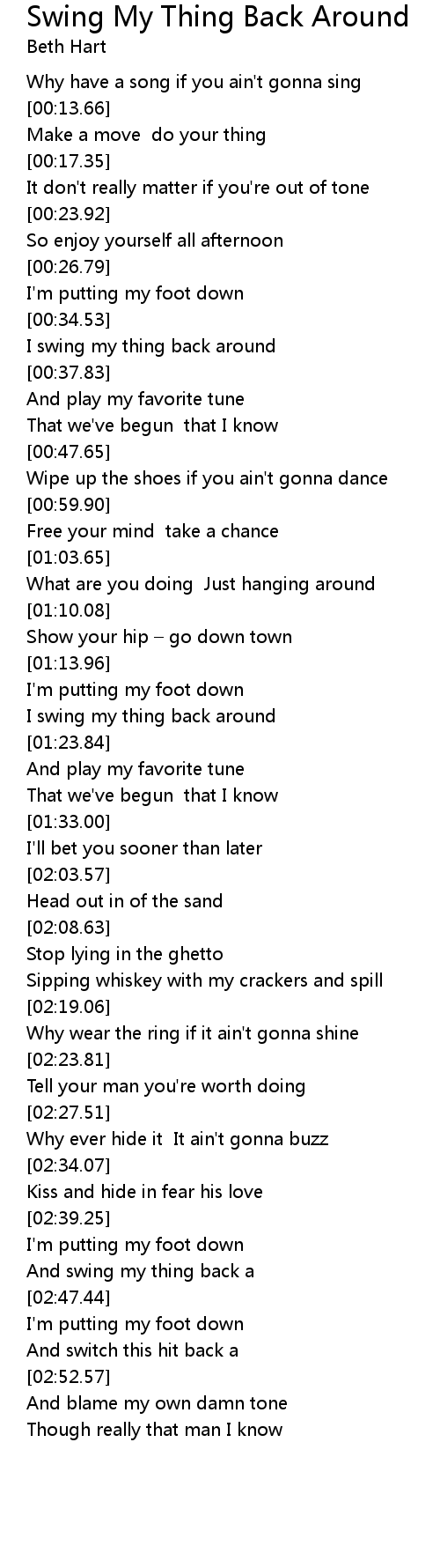 | [00:35.71] | I swing my thing back around |