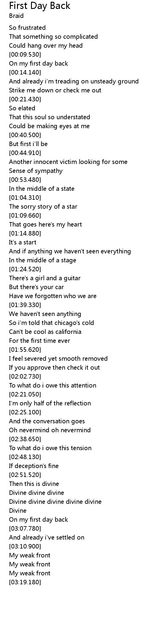 First Day Back 歌词