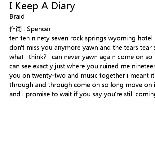 | 歌曲 | I Keep A Diary |