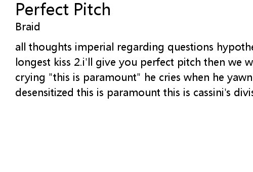 | all thoughts imperial regarding questions hypothetical 1.i'll give you the longest kiss 2.i'll give you perfect pitch then we won't shake anymore irony is crying "this is paramount" he cries when he yawns she cries when he yawns talk desensitized this is paramount this is cassini's division |