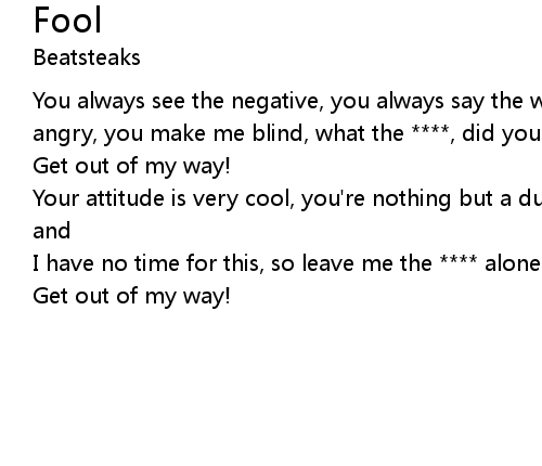 | You always see the negative, you always say the world is shit, you make me angry, you make me blind, what the ****, did you expect? | |