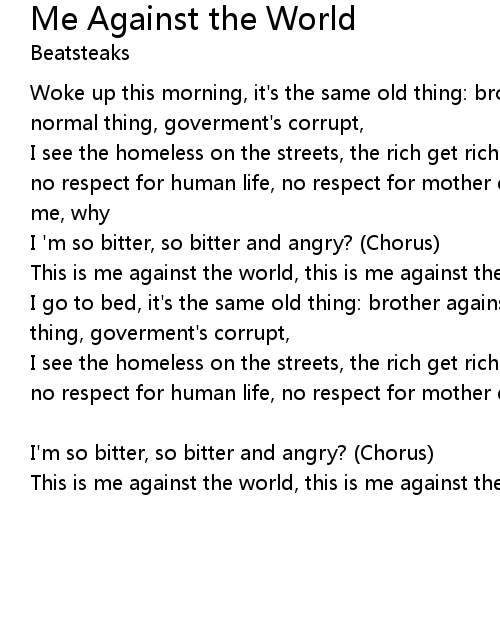This is me against the world, this is me against the whole wide world. |