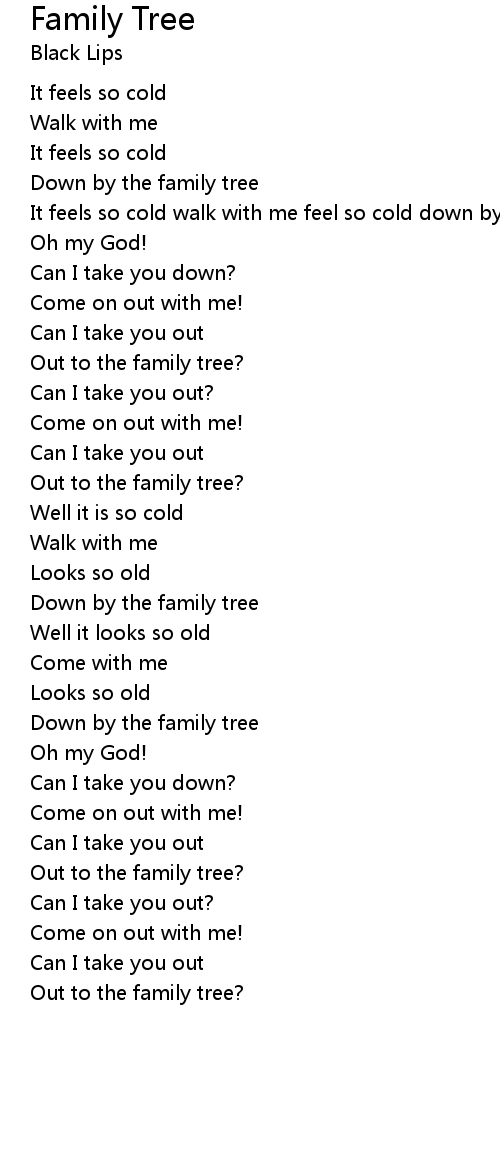 | It feels so cold walk with me feel so cold down by the family tree | |