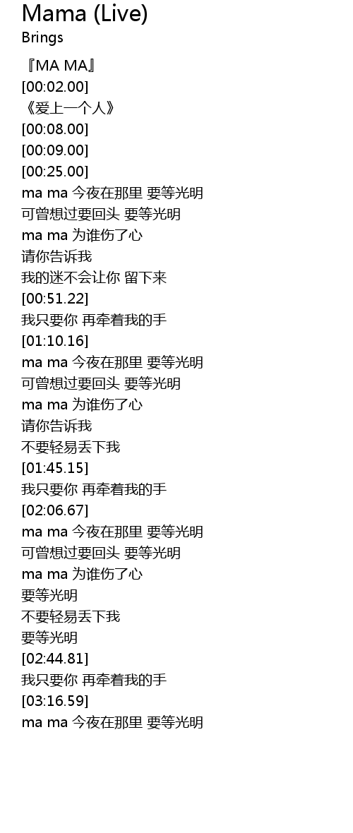 | [03:22.81] | ma ma 今夜在那里 要等光明 |