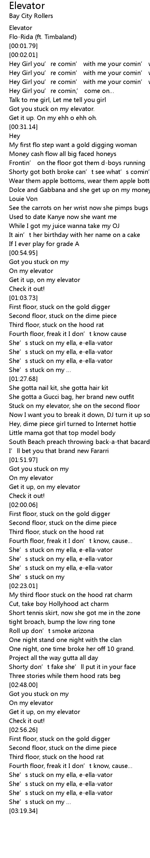 | [03:12.77] | She’s stuck on my ella, e-ella-vator |