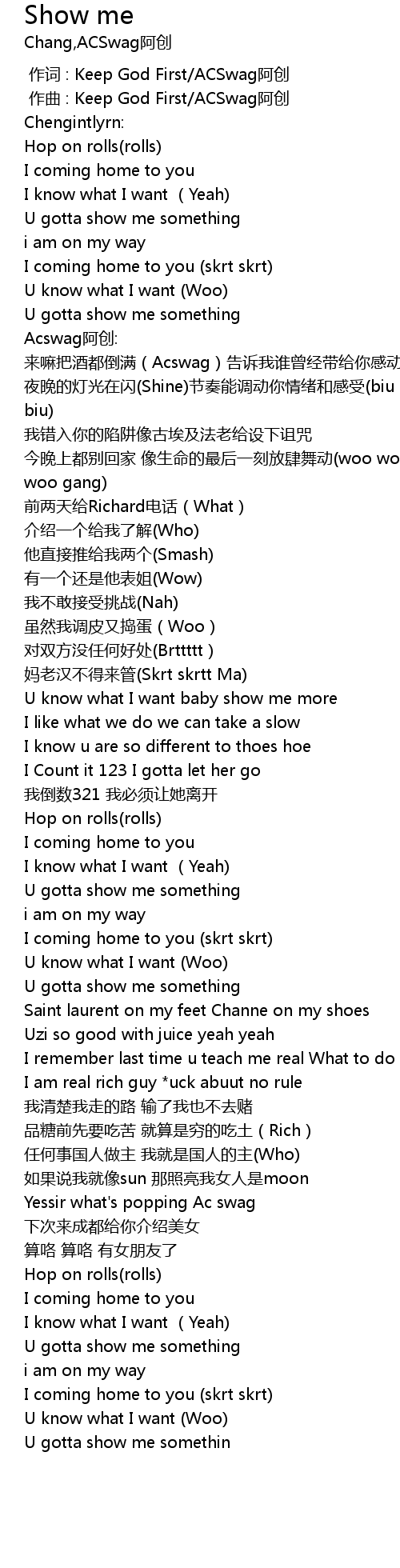 | [02:51.067] | U gotta show me somethin |