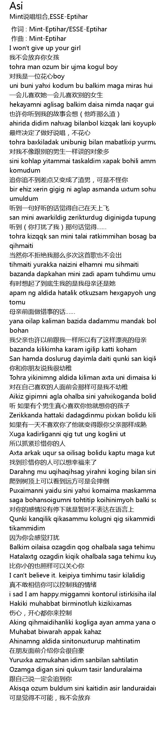 | [01:48.162] | Aikiz gipimni agla ohalba sini yahxikoganda bolidu kiqikbala |