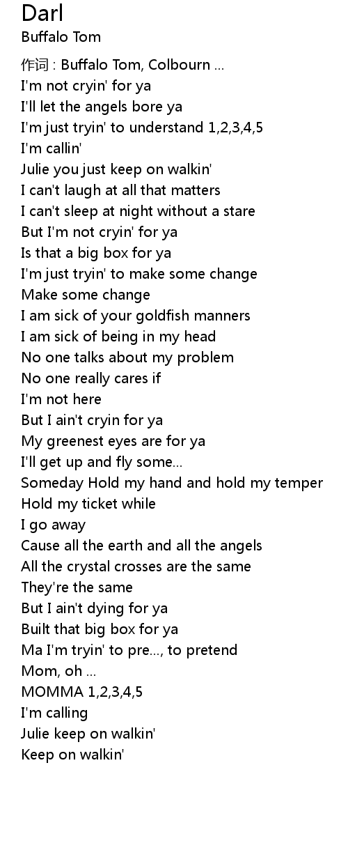 | 作词 : Buffalo Tom, Colbourn ... | |