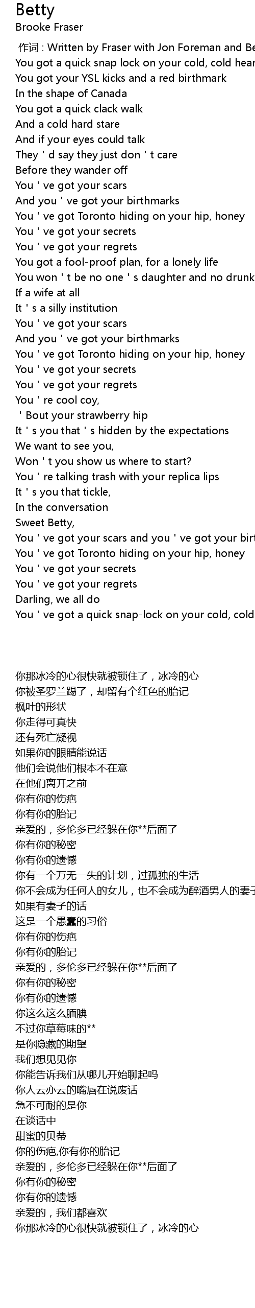 | [02:22.48] | You ve got your scars and you ve got your birthmarks |