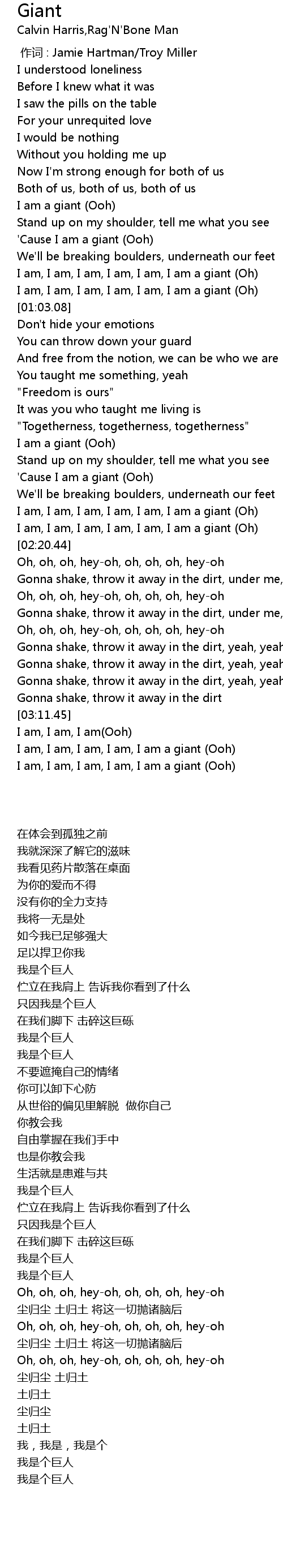 | [00:53.65] | I am, I am, I am, I am, I am, I am a giant Oh |