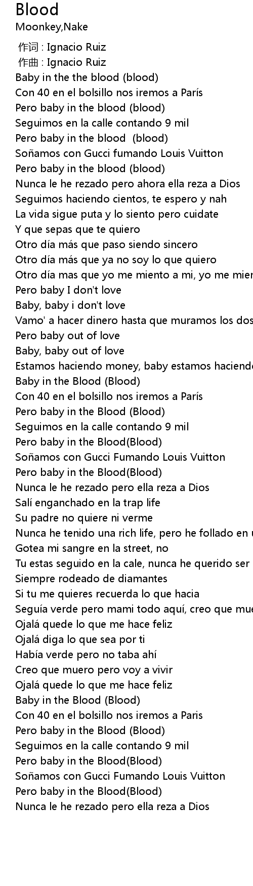 | [02:28.833] | Pero baby in the Blood (Blood) |