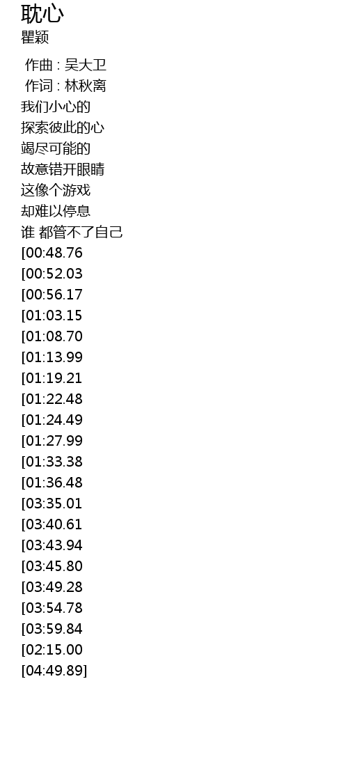 | [04:35.83][03:59.84][02:06.39] | xiang yong you que bu gan shuo de dan xin |