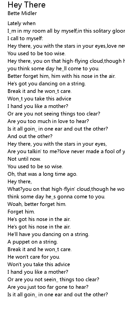 Hey there, you on that high-flying cloud,though he won_t throw a crumb to you, you think some day he_ll come to you. |