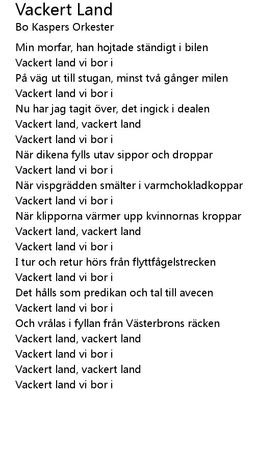 | Vackert land, vackert land | |