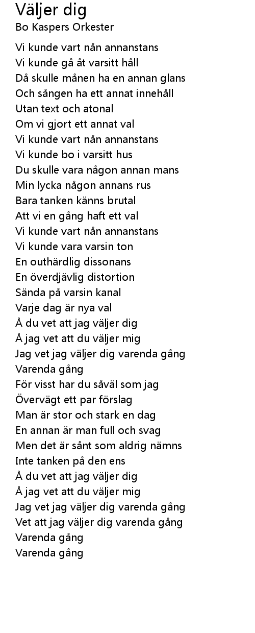 | Å du vet att jag väljer dig | |