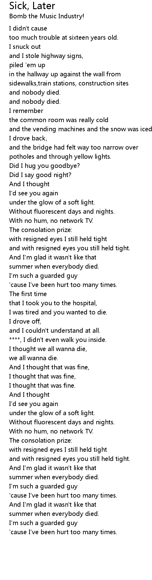 I was tired and you wanted to die. |