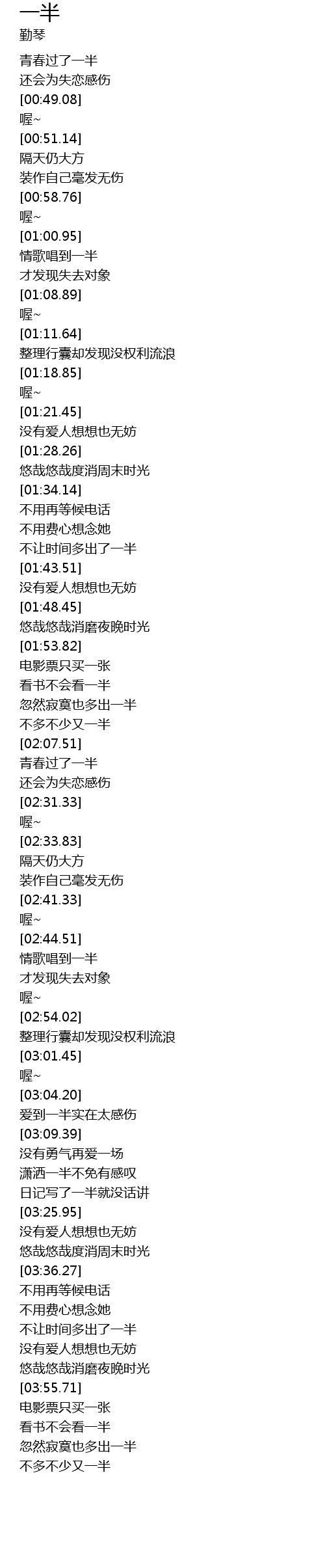 | [04:01.64] | 忽然寂寞也多出一半 |