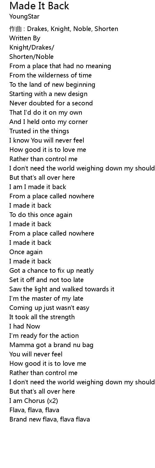 | 歌曲 | Made It Back |