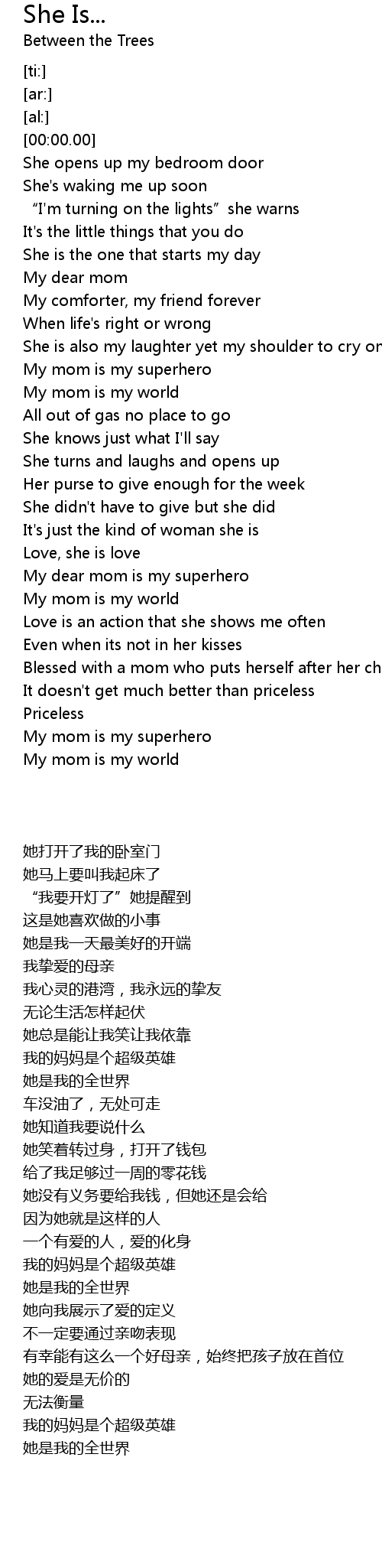 | [02:39.98] | My mom is my world |