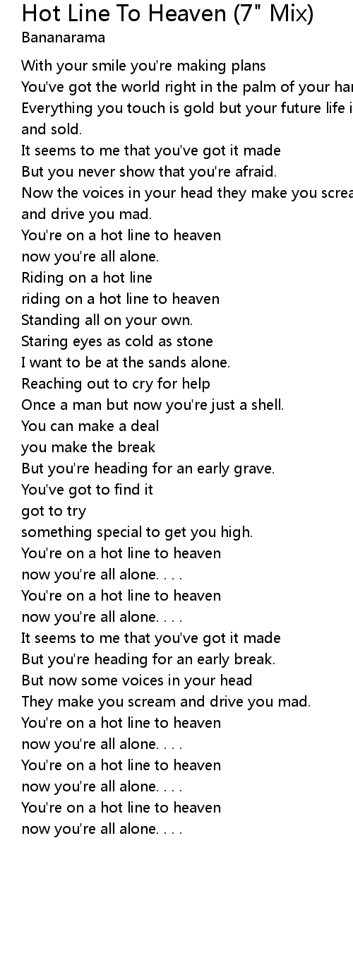 You're on a hot line to heaven |