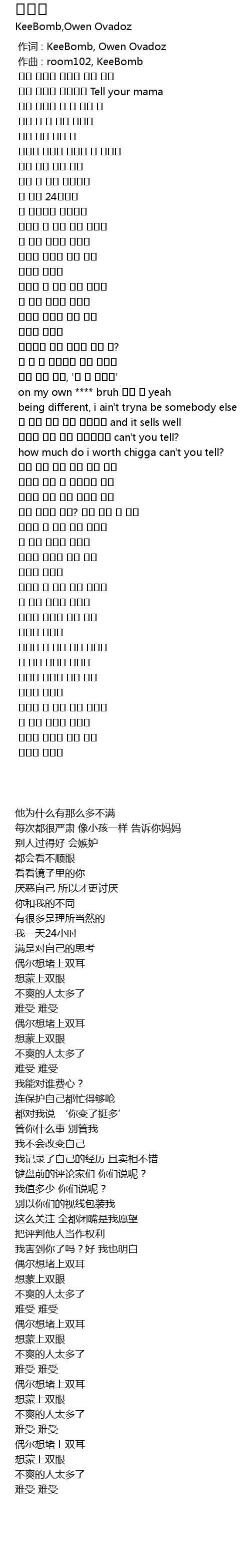 | [00:00.000] | 作词 : KeeBomb, Owen Ovadoz |