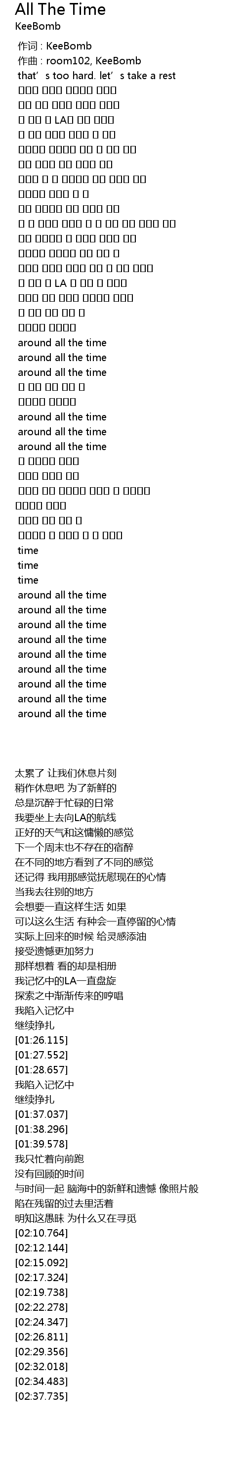 | [00:00.000] | 作词 : KeeBomb |