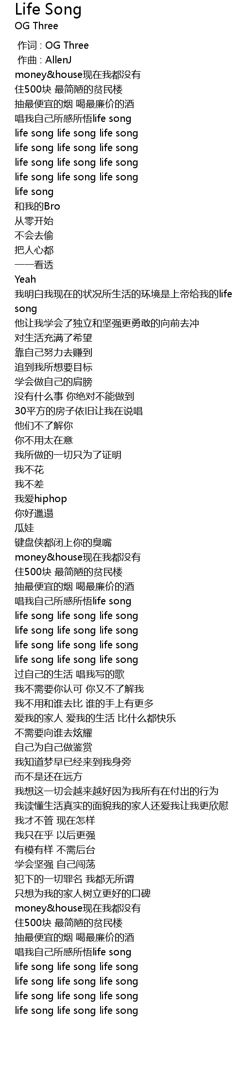 | [00:52.97] | 我明白我现在的状况所生活的环境是上帝给我的life song |