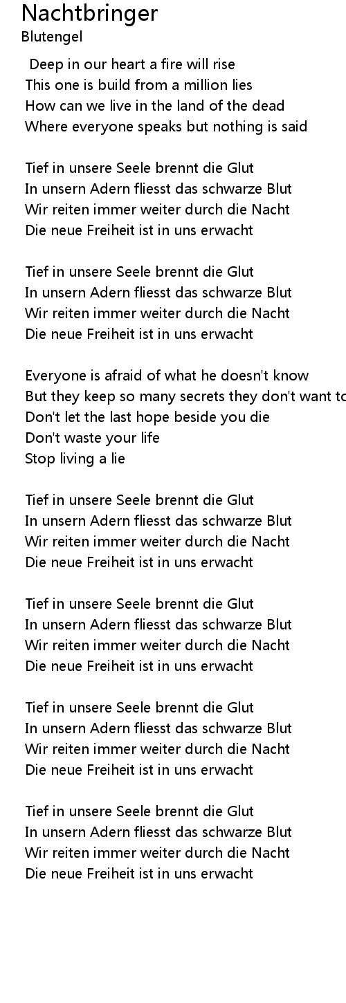 Tief in unsere Seele brennt die Glut |