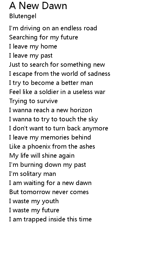 | I am waiting for a new dawn | |