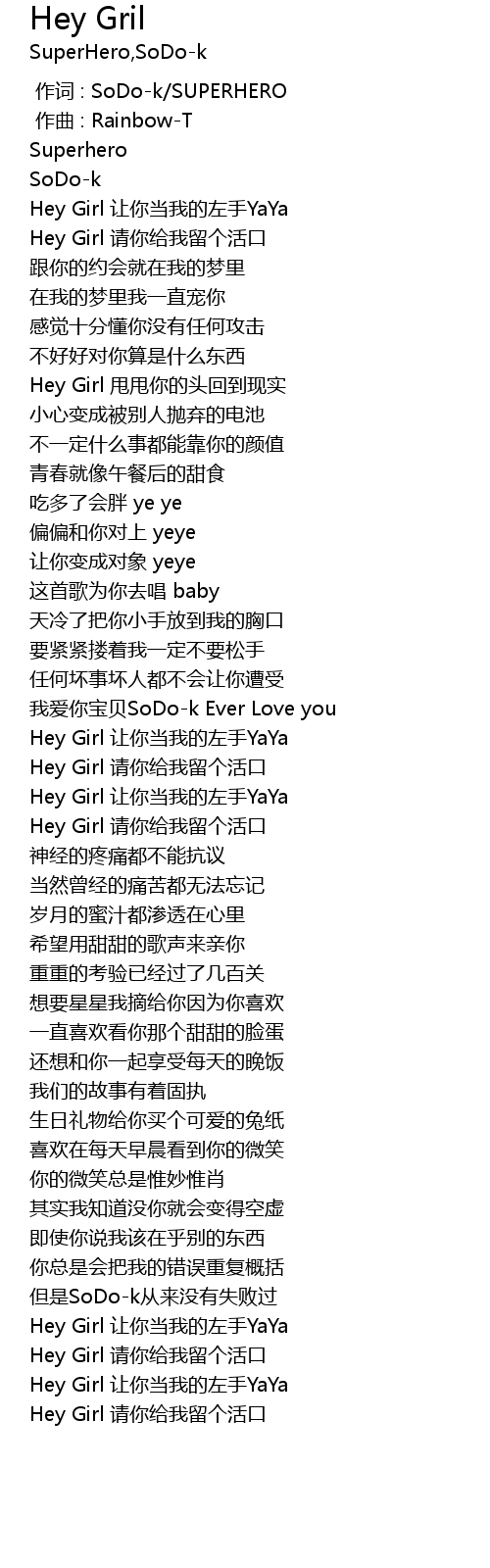 | [01:36.440] | Hey Girl 让你当我的左手YaYa |