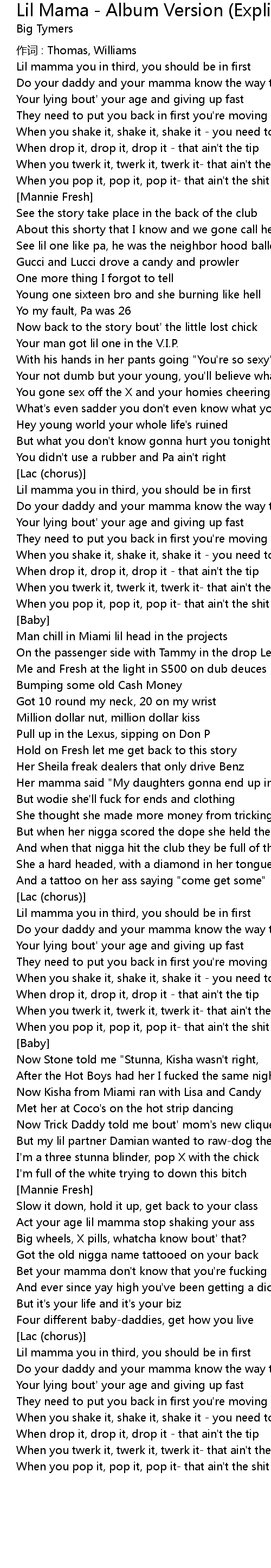 | 歌曲 | Lil Mama - Album Version (Explicit) |