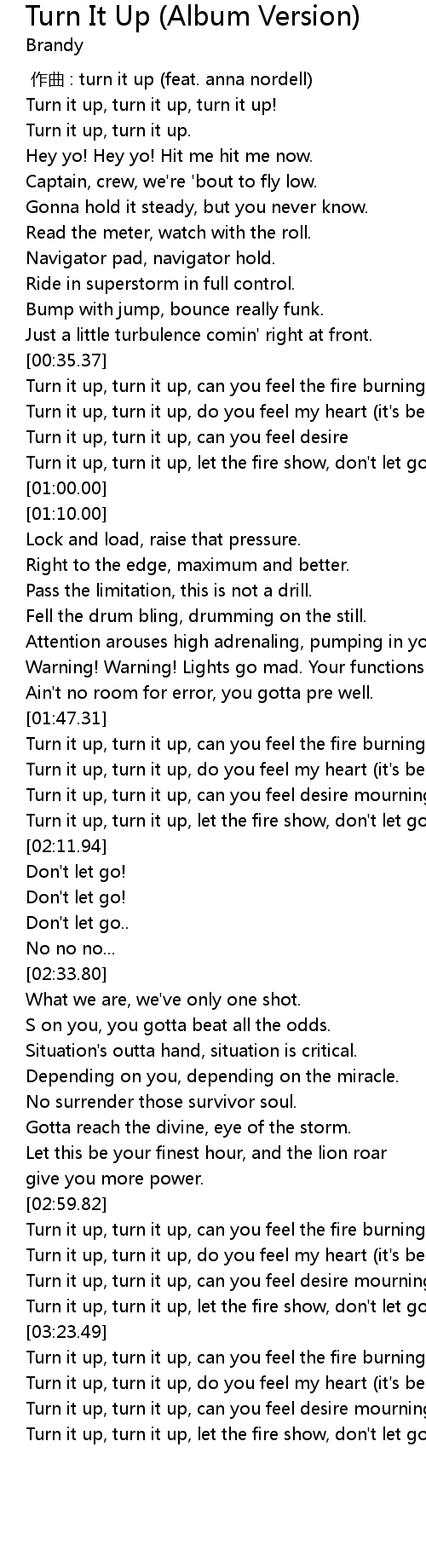 | [00:00.00] | Turn it up, turn it up, turn it up! |
