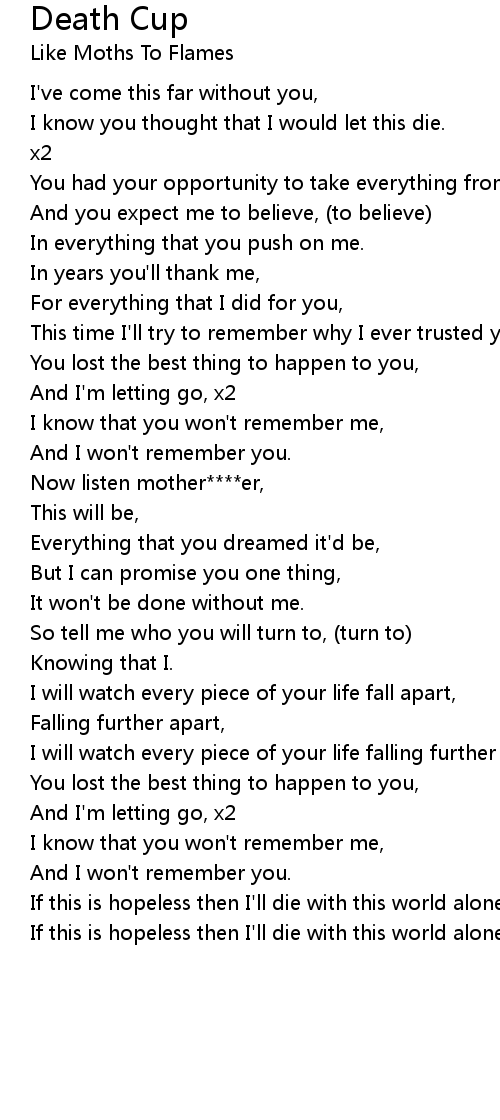 If this is hopeless then I'll die with this world alone, ****ing alone. |