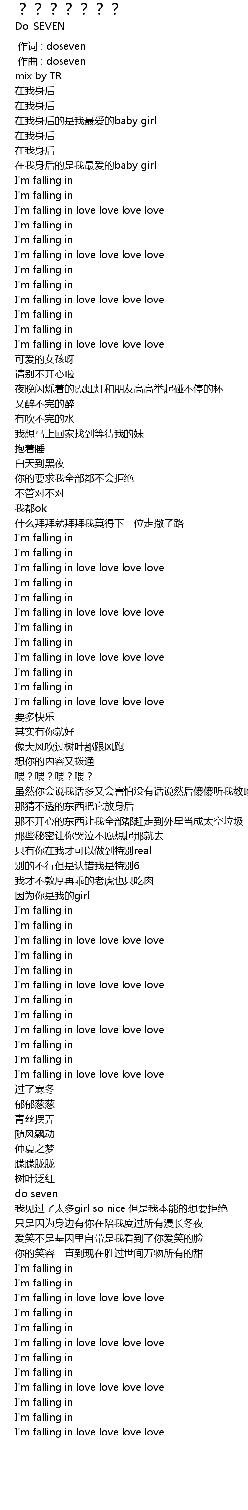 | [00:13.665] | 在我身后的是我最爱的baby girl |