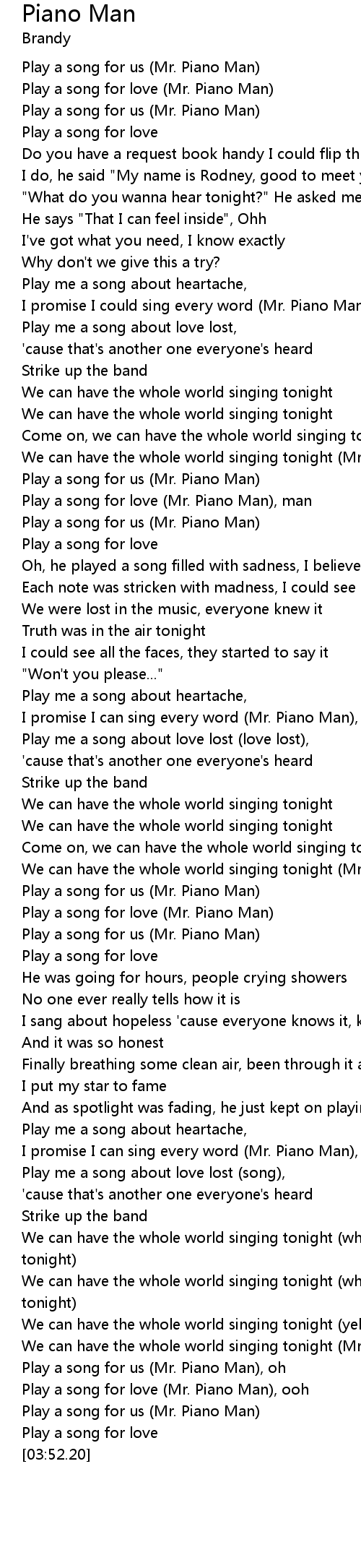 | [00:55.69] | I promise I could sing every word (Mr. Piano Man) |