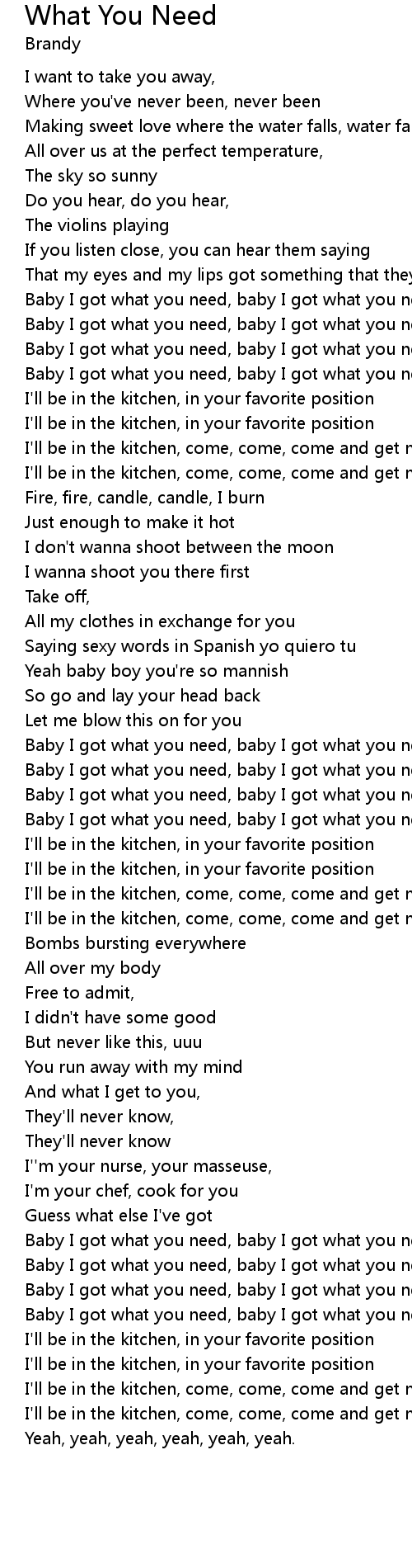 Baby I got what you need, baby I got what you need... |