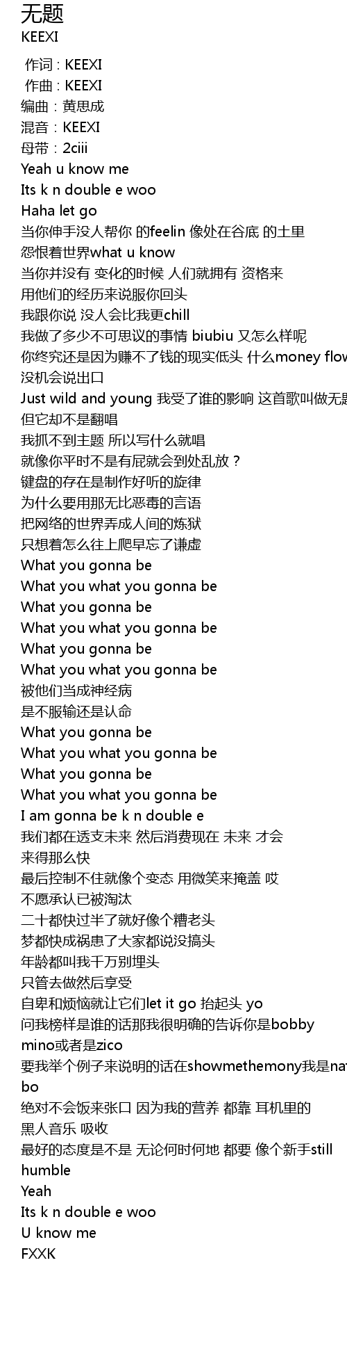 | [00:00.000] | 作词 : KEEXI |