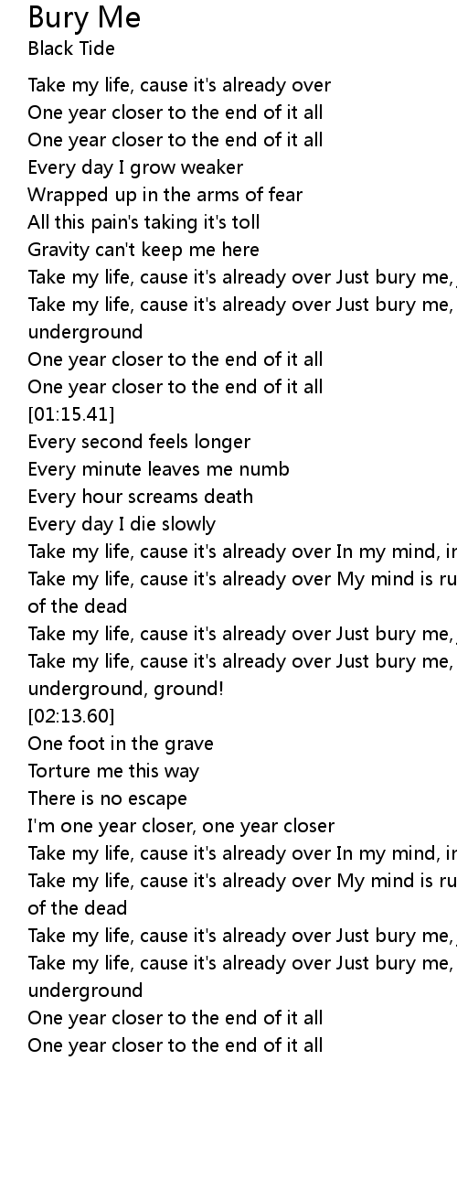 Take my life, cause it's already over Just bury me, just bury me |