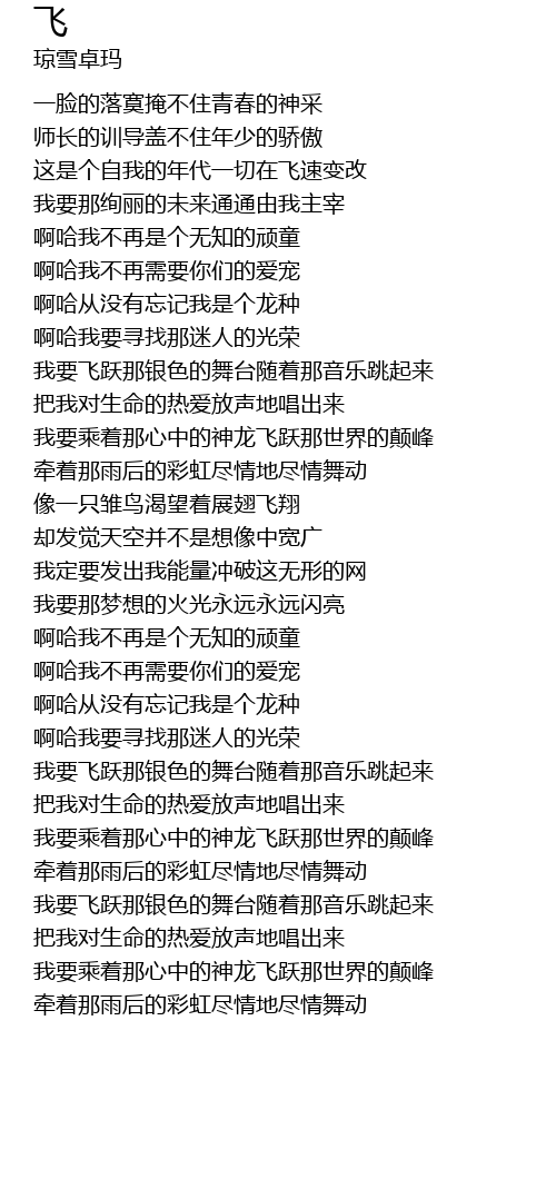 | [02:57.201] | 我要乘着那心中的神龙飞跃那世界的颠峰 |