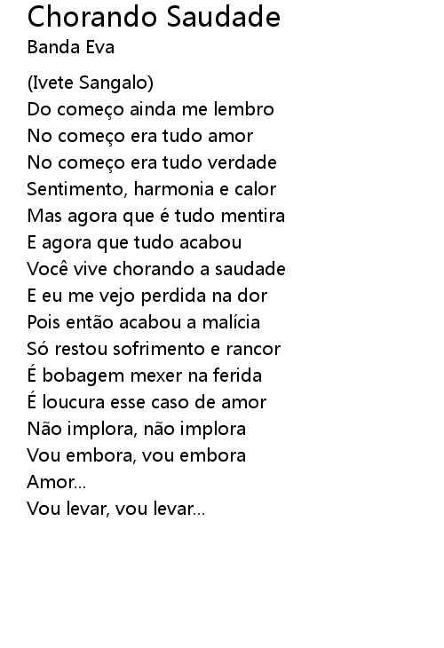 | 歌曲 | Chorando Saudade |