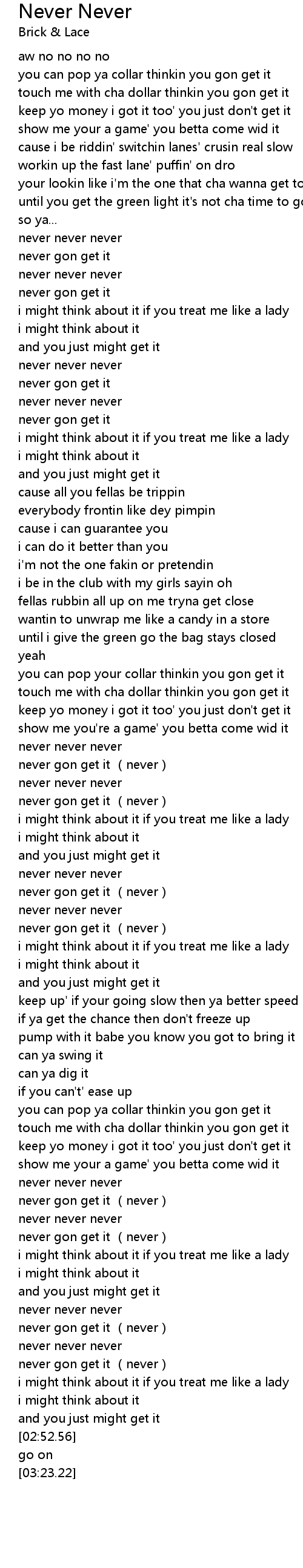 | [02:41.51] | never gon get it never |
