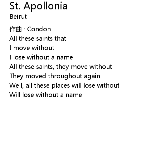 | 歌曲 | St. Apollonia |