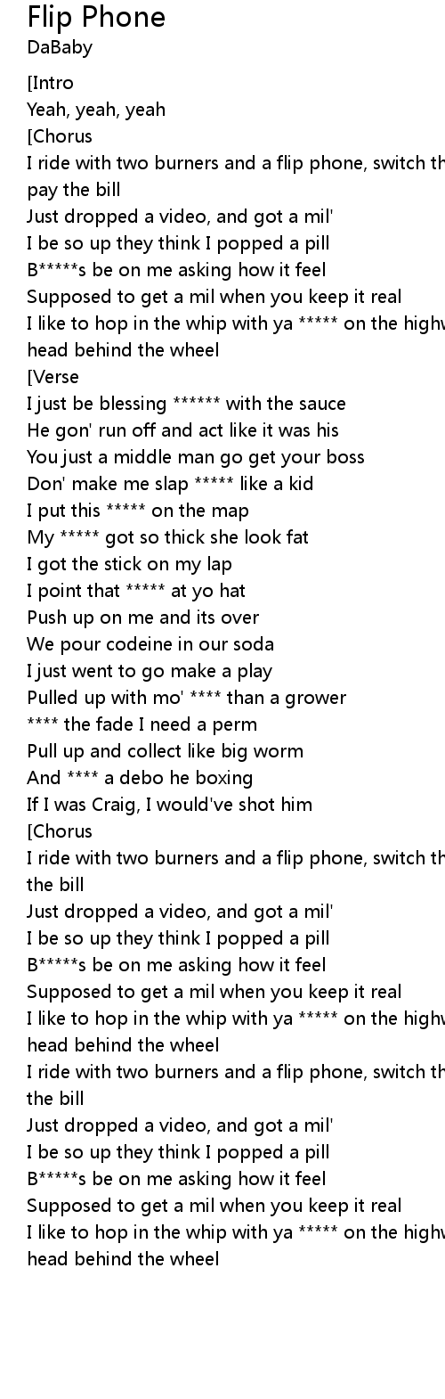 I ride with two burners and a flip phone, switch the numbers I don't the bill |