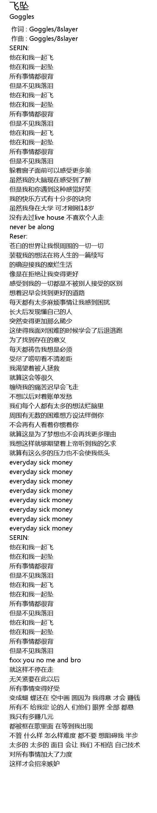 | [00:00.000] | 作词 : Goggles/8slayer |