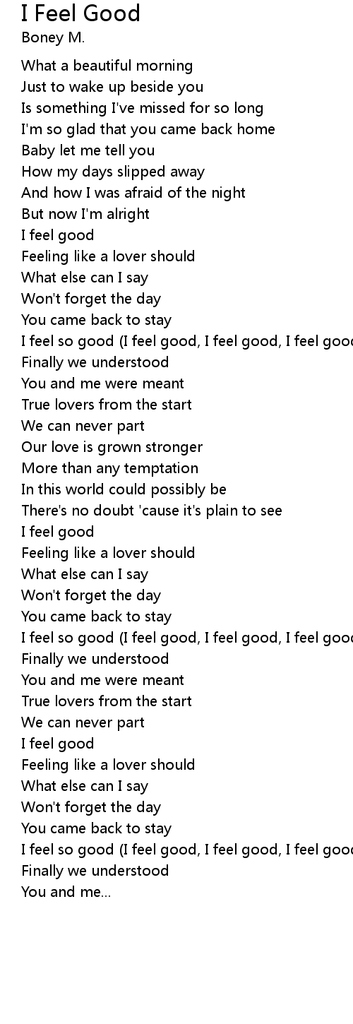 | I feel so good (I feel good, I feel good, I feel good) | |
