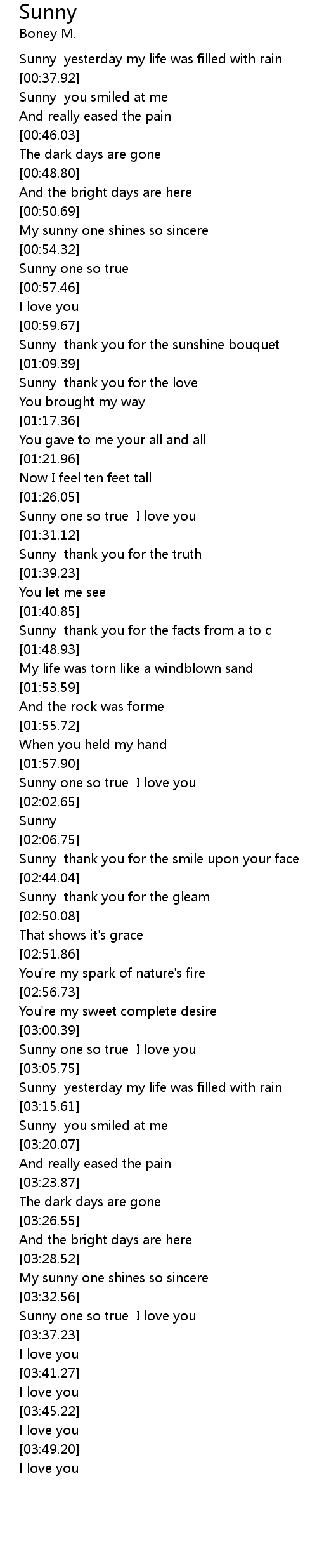 Sunny one so true |